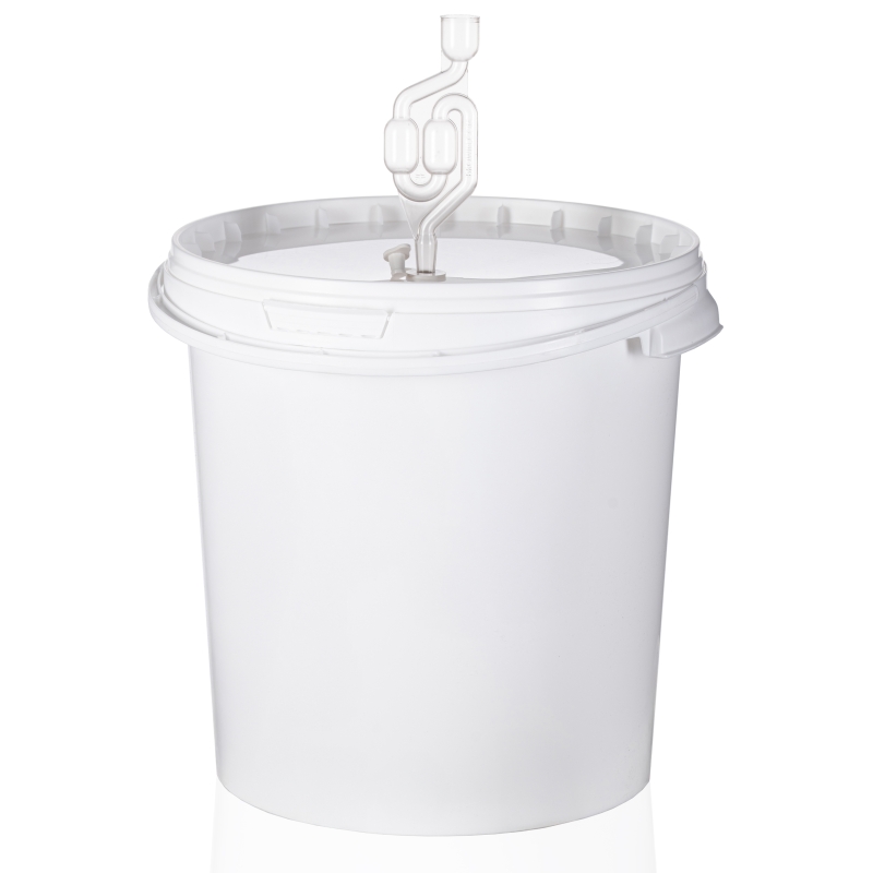 Potrzebujesz poręcznego i trwałego pojemnika? To wielofunkcyjne wiadro okrągłe o pojemności 15 L doskonale sprawdzi się w Twoim gospodarstwie domowym lub firmie. Zostało wykonane z wysokiej jakości tworzywa sztucznego, dopuszczonego do kontaktu z żywnością. Nadaje się zarówno do użytku prywatnego, jak i komercyjnego. Dzięki okrągłym ściankom i szerokiemu wlewowi, bardzo łatwo utrzymać pojemnik w czystości. Szczelna pokrywa zapewnia świeżość zawartości i chroni przed zgubnym wpływem powietrza czy wilgoci. Wiaderko zostało wyposażone w plastikową rączkę która zapewnia wygodę podczas przenoszenia. Jeśli planujesz robić w nim alkohol, możesz wybrać opcję z dodatkowym osprzętem, tj. korkiem i rurką fermentacyjną oraz kranem z reduktorem osadów.