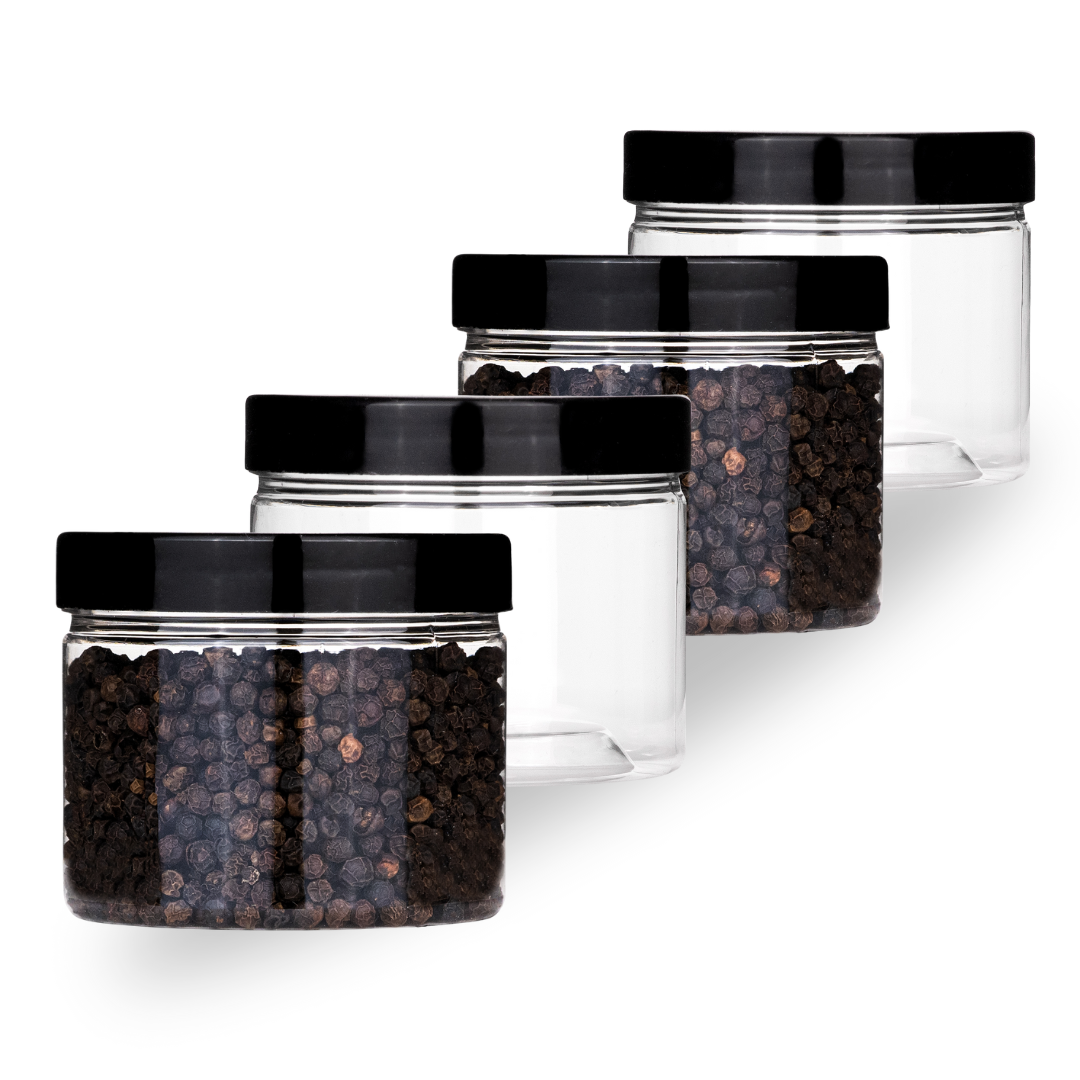 Słoiczki z wygodnymi wieczkami przeznaczone do przechowywania przypraw, każde o pojemności 200 ml. Te praktyczne słoiczki są idealnym rozwiązaniem do organizacji i przechowywania różnorodnych przypraw, jak również do przechowywania małych ilości innych produktów spożywczych, jak ziarna kawy, herbaty czy suszone zioła.