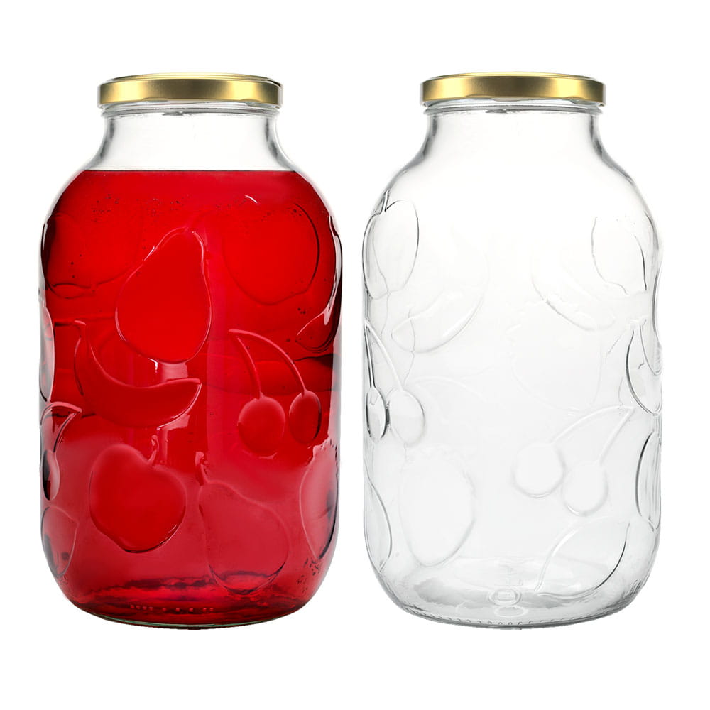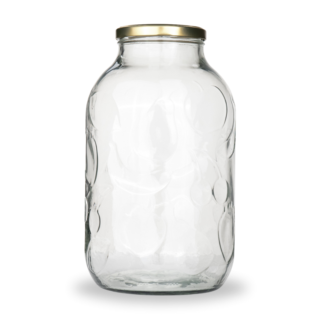Praktyczny i solidny zestaw 6 dużych słojów o pojemności 5 litrów z ozdobnym tłoczeniem owoców. To idealne rozwiązanie dla osób, które robią większe ilości przetworów, nastawów lub potrzebują pojemnych naczyń do przechowywania.